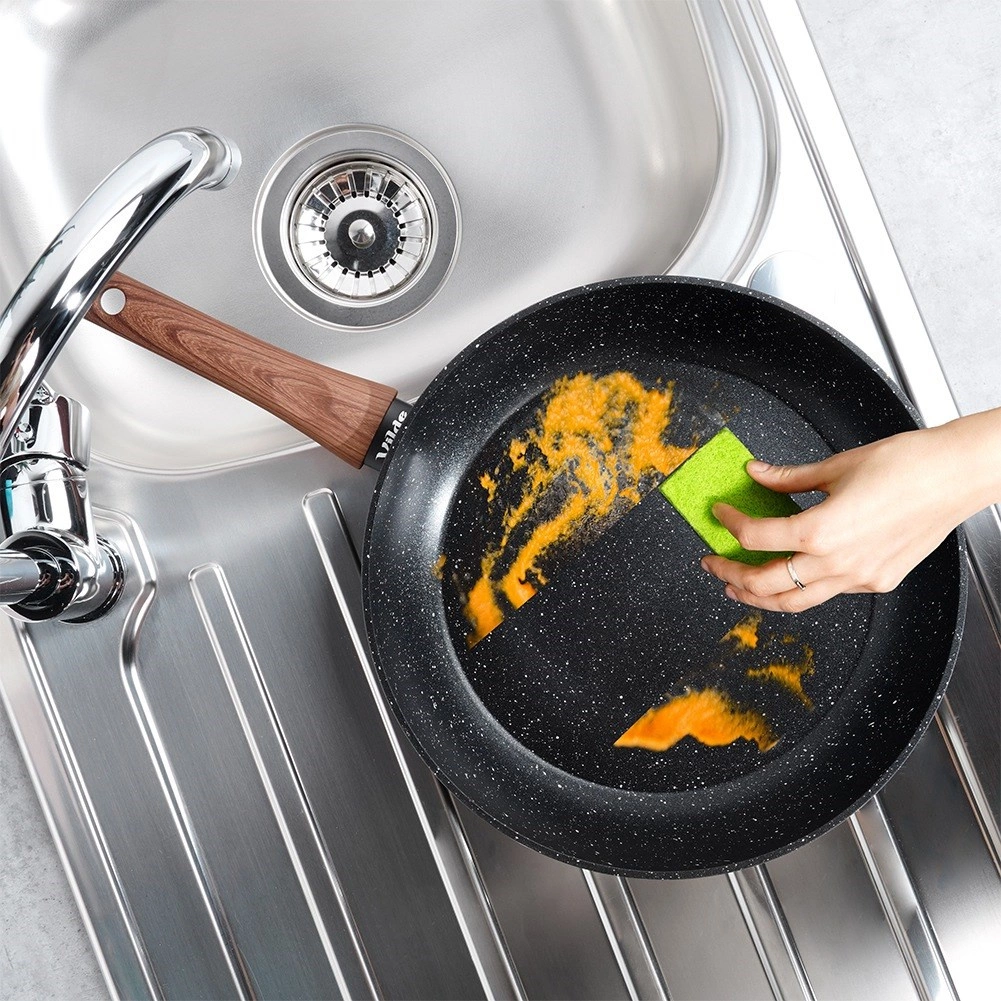 A köves textúra kiváló ételkioldást biztosít, így minimális zsiradékkal, leégés nélkül főzhet, és a tisztítás is gyors.