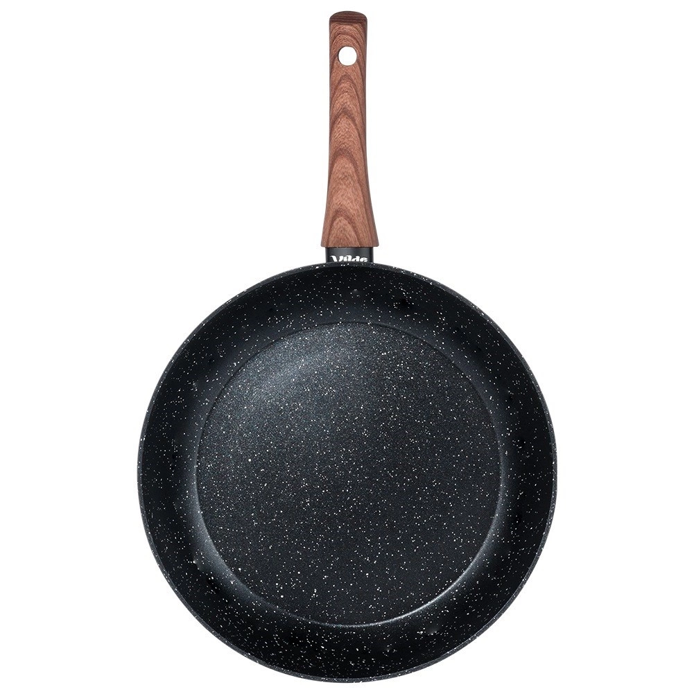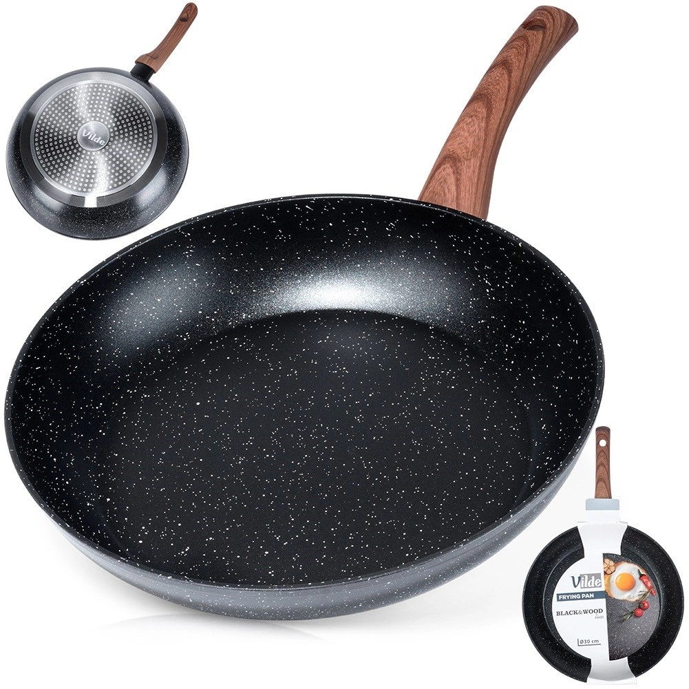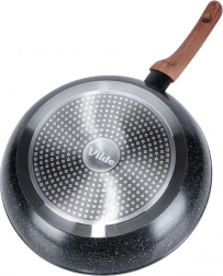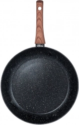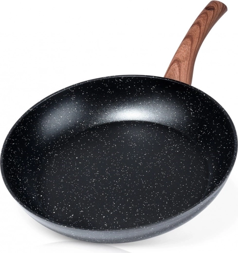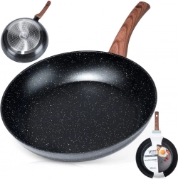 Masszív, 30 cm átmérőjű gránit serpenyő tapadásmentes felülettel, gyors és egyenletes felmelegedéssel, valamint ergonomikus, fa hatású nyéllel. Alkalmas minden tűzhelytípushoz, beleértve az indukciósat is, és mosogatógépben mosható – ideális egészséges sütéshez minimális zsiradékkal.