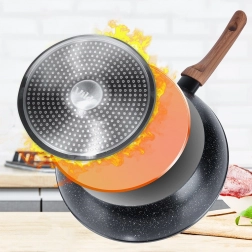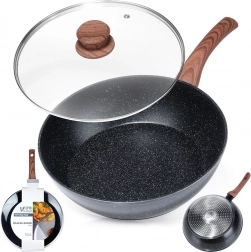 Ez a mély, alumíniumból készült serpenyő gránit tapadásmentes bevonattal ideális a mindennapi főzéshez: sütéshez, pirításhoz és pároláshoz. A fekete szín és a fa hatás elegáns kombinációja remekül illik a modern konyhába, míg az üvegfedő lehetővé teszi az étel ellenőrzését és megtartja a hőt és a nedvességet.