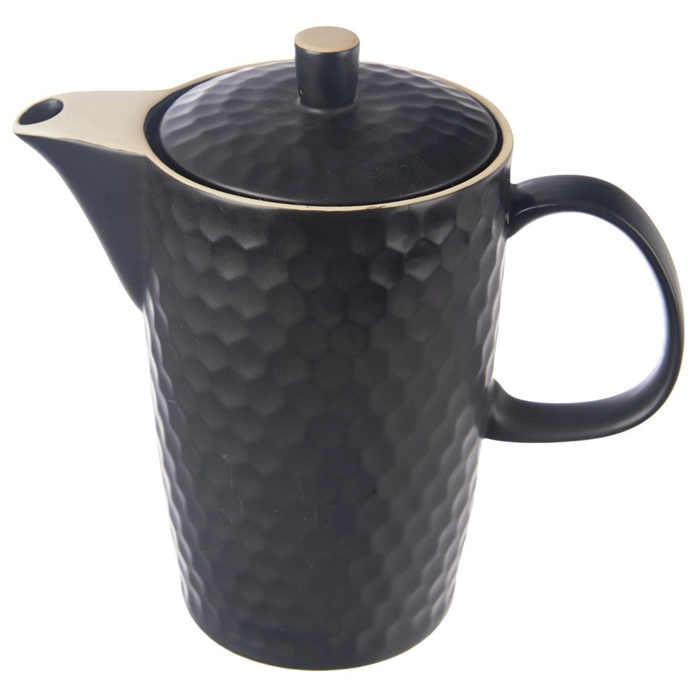 Fedezze fel a TEA TIME praktikus és dizájnos kancsóját tartós kőedényből, matt fekete kivitelben. A méhsejtek által inspirált texturált felület modern hangulatot kölcsönöz az asztalnak, míg a fogantyús fedél segít hosszabb ideig melegen tartani az italokat és védi azokat a szennyeződésektől.