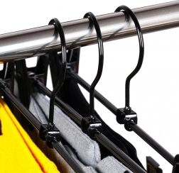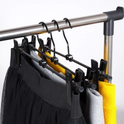 A csúsztatható, erős rugóval ellátott csipeszek megbízhatóan tartják a különféle anyagokat és méreteket, a gyerekdaraboktól a felnőtt nadrágokig és szoknyákig.