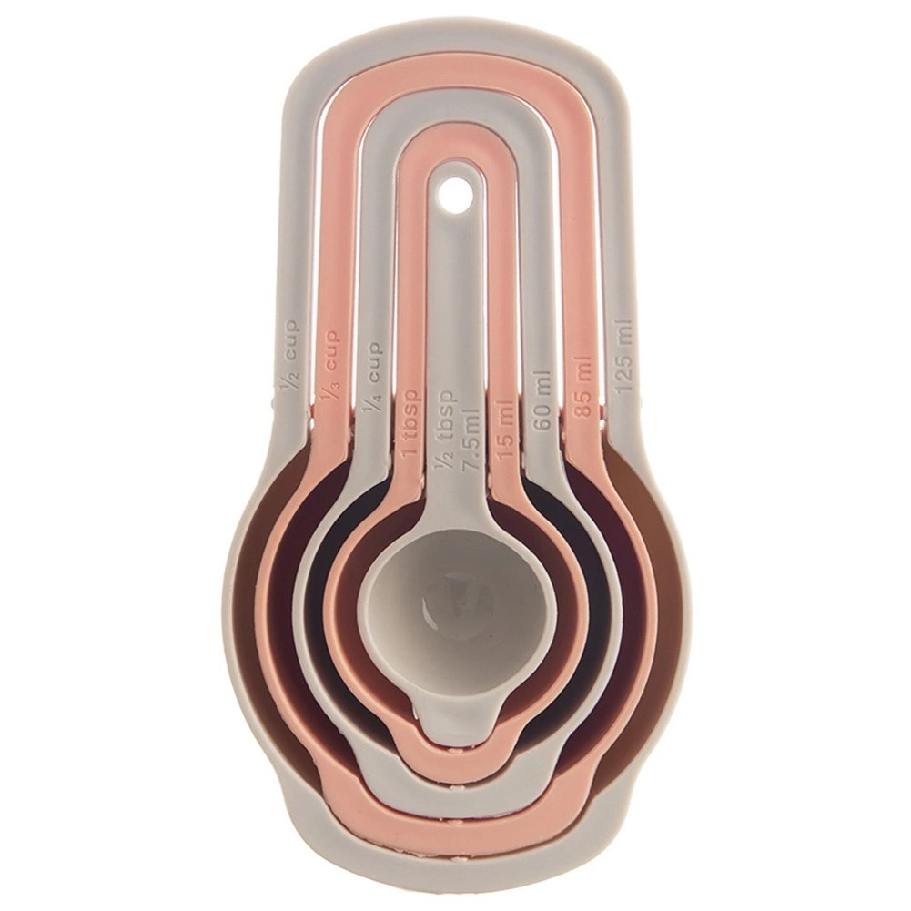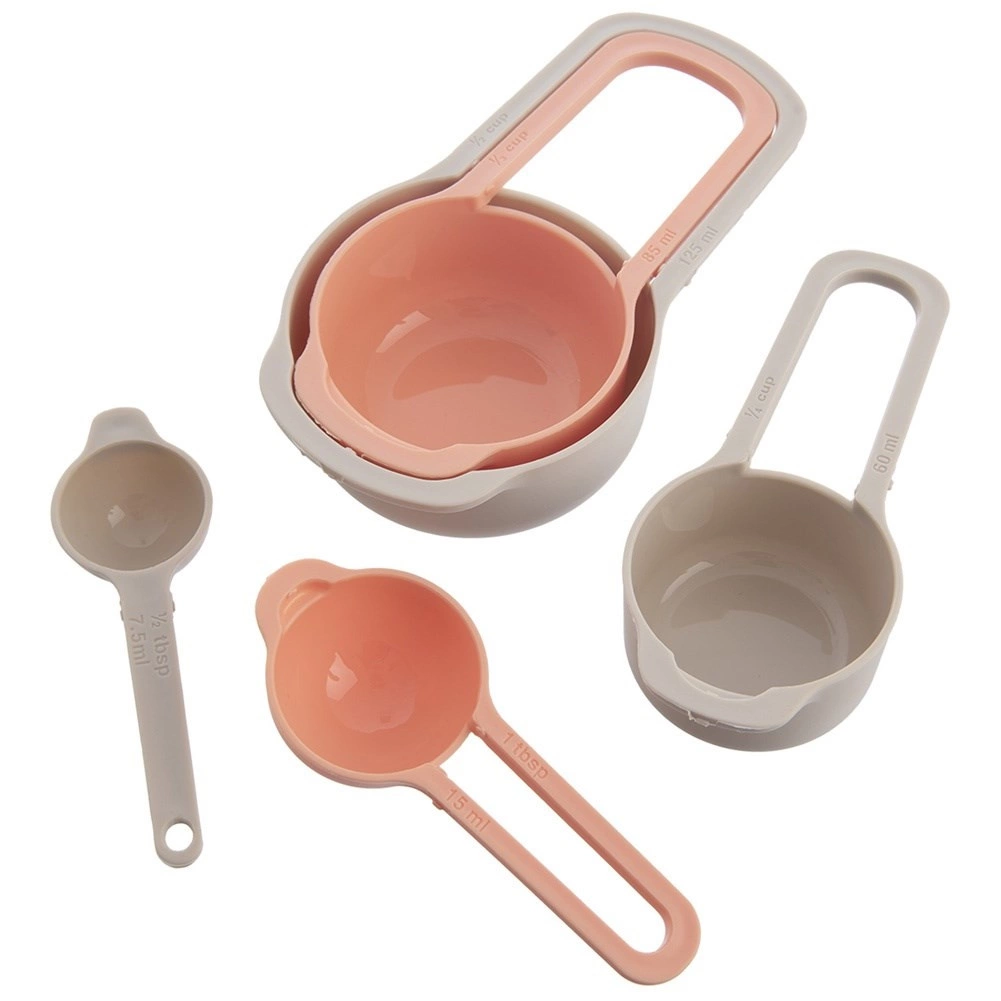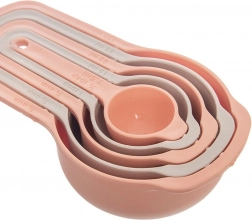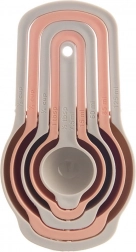 A készlet tartalmaz 125 ml (1/2 csésze), 85 ml (1/3 csésze), 60 ml (1/4 csésze), 15 ml (1 evőkanál) és 7,5 ml (1/2 evőkanál) mérőket. Tökéletes a száraz és folyékony alapanyagok pontos adagolásához.