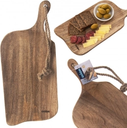 Fedezze fel a sokoldalú, minőségi mangófából készült vágódeszkát, amely a praktikusságot és a dizájnt ötvözi. Ideális hús, zöldség és gyümölcs szeleteléséhez, ugyanakkor mutatós tálcaként is szolgál sajtok, felvágottak vagy falatok felszolgálásához. Az ergonomikus fogantyú és az akasztózsinór megkönnyíti a kezelést és a tárolást.
