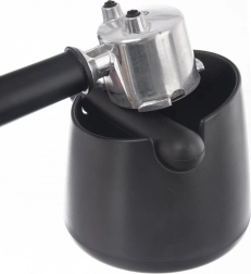 A csúszásmentes talp filcbetéttel szilárdan a helyén tartja az edényt, a gumirúd tompítja az ütéseket és védi a portafiltert.
