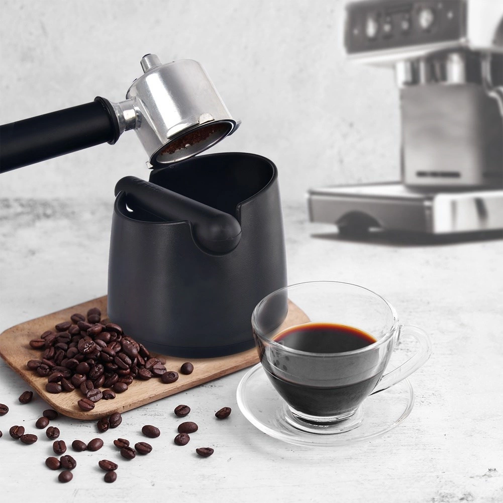 Tartsa kávósarkát tisztán és rendezettén. Ez a használt kávé számára készült kopogtató kényelmesen több pogácsát is befogad, így nem kell állandóan a szemeteshez rohangálni. A masszív, elegáns fekete műanyag, a kivehető gumirúd és az egyszerű karbantartás ideális kiegészítővé teszi a karos kávégéphez.