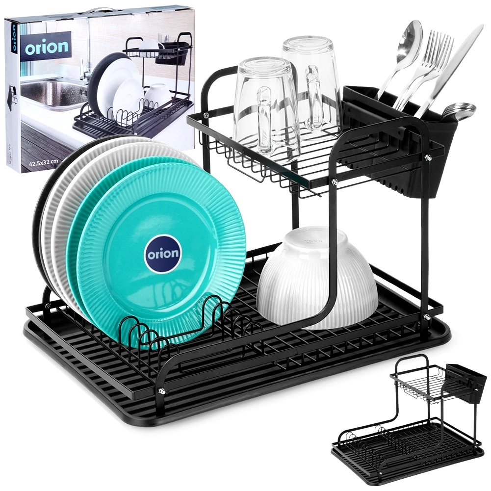 A praktikus, kétszintes RADKA edényszárító elegáns fekete színben helyet takarít meg a pulton és felgyorsítja a száradást. Kivehető, kétrekeszes evőeszköztartót, csepegtetőtálcát a vízelvezetéshez és rendezett tárolást tányérokhoz, poharakhoz és csészékhez kínál. A tartós fém váz matt kivitelben és a könnyű karbantartás ideálissá teszi modern és klasszikus konyhákba egyaránt.