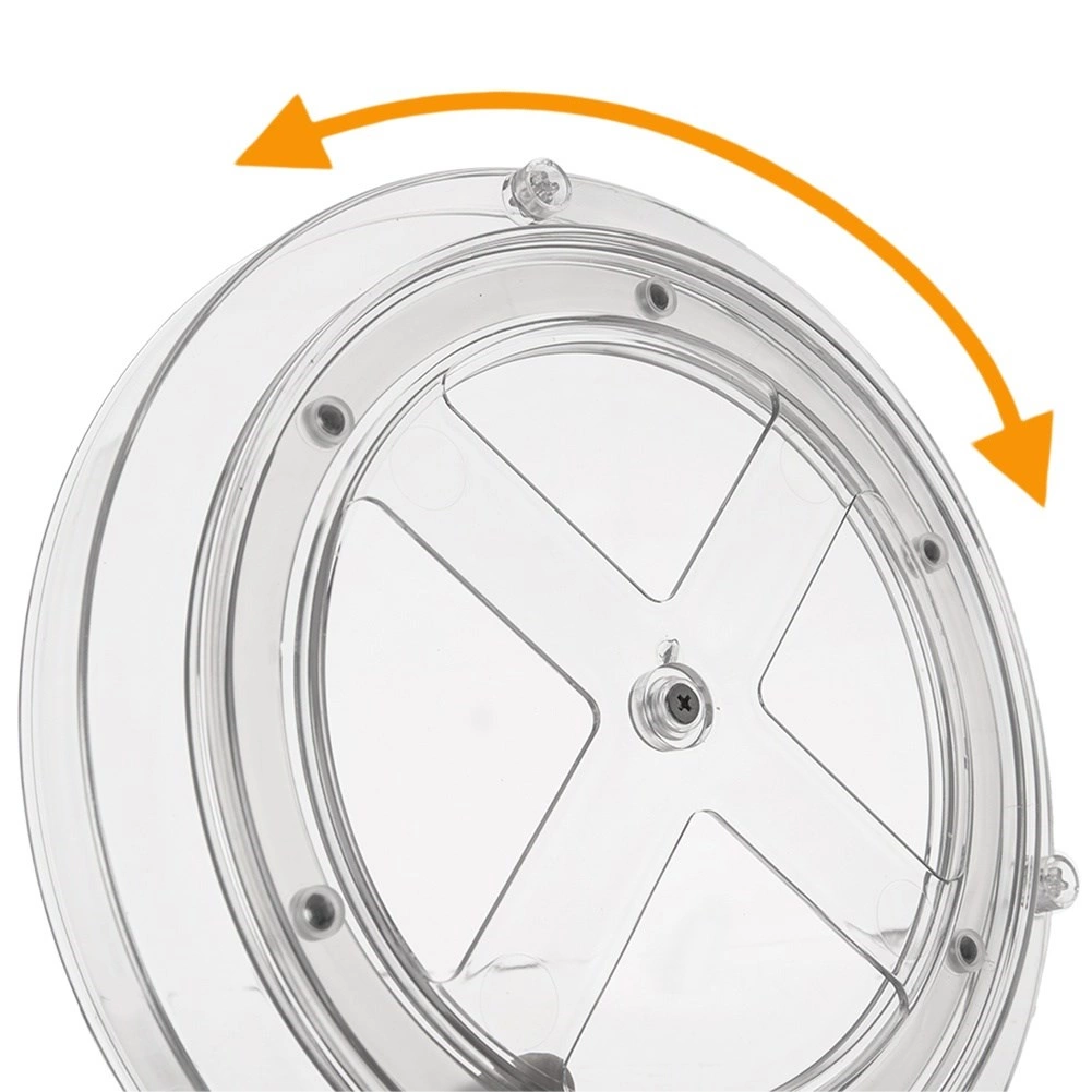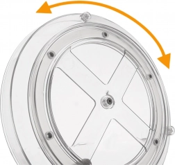 A forgó rendező okos megoldás a rendre a konyhában, fürdőszobában és a kamrában. A stabil, kör alakú talp 360°-ban forog, így kényelmesen elérhető minden, átpakolás nélkül. A 27 cm átmérő és a 4,5 cm magasság kompakt, mégis meglepően tágas tárolást biztosít.