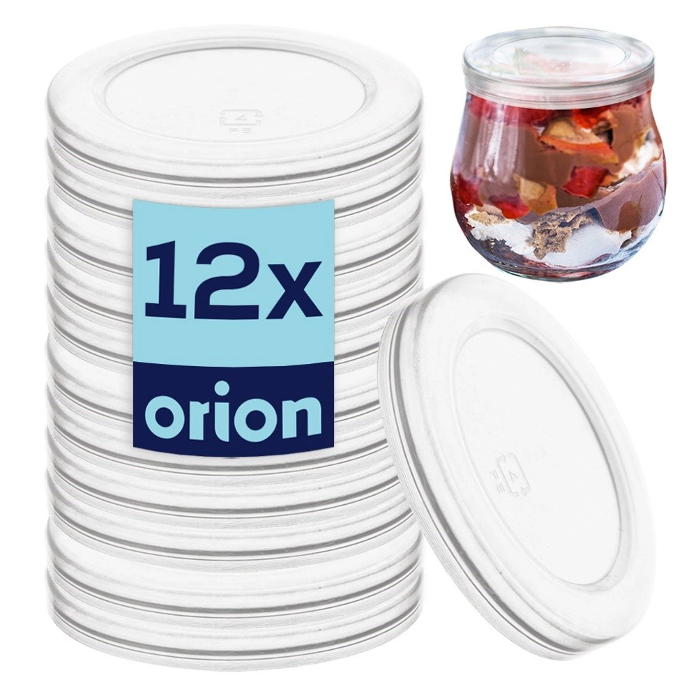 Praktikus készlet 12 átlátszó műanyag tetőből, 5,5 cm átmérővel, 130 ml-es joghurtos és desszertes üvegcsékhez. A tetők szorosan zárnak, megőrzik a frissességet, és védik a tartalmat tárolás és szállítás közben. Tartós anyagból készült, többszöri használatra. Bevált minőség az ORION márkától.