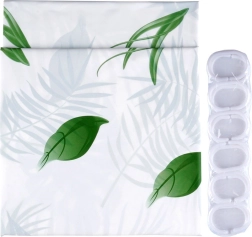 Ez a zuhanyfüggöny biztonságos és környezetbarát PEVA anyagból védi fürdőszobáját a nedvességtől, és vízlepergető felületének köszönhetően tiszta megjelenést biztosít. Az elegáns fehér kivitel zöld botanikus mintával feldobja bármelyik fürdőszobát – a klasszikustól a modernig.
