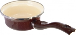 Kompakt zománcozott lábas 12 cm átmérővel és 350 ml űrtartalommal, retró stílusban, ideális kisebb adagokhoz, tej melegítéséhez vagy szószok készítéséhez. Minőségi acélból készült, tartós zománcbevonattal, krémszínű belsővel és barna külső felülettel. Minden típusú tűzhelyhez alkalmas, beleértve az indukciót is, sütőben is használható, és mosogatógépben biztonságos. Az egészségre ártalmatlan zománcréteg az allergiások számára is kíméletes.