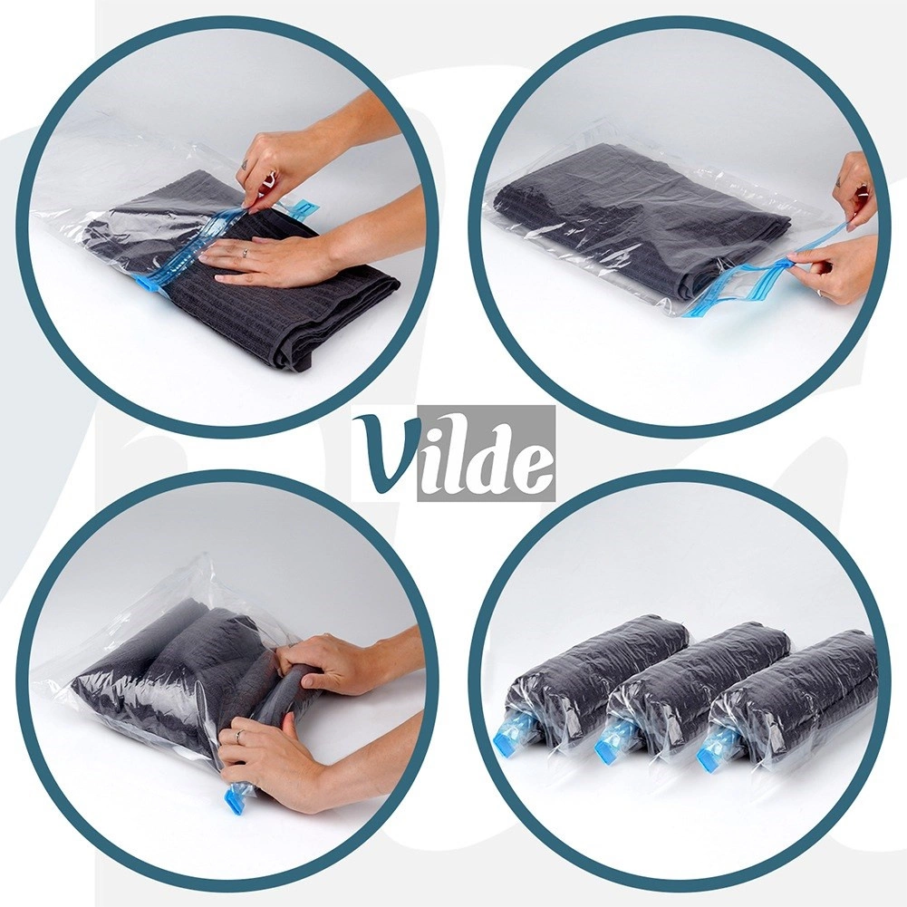 A vákuumos zsákok akár 70%-kal csökkentik a ruhák térfogatát, így a bőröndbe és a szekrénybe is többet pakolhat, miközben rendet tart.