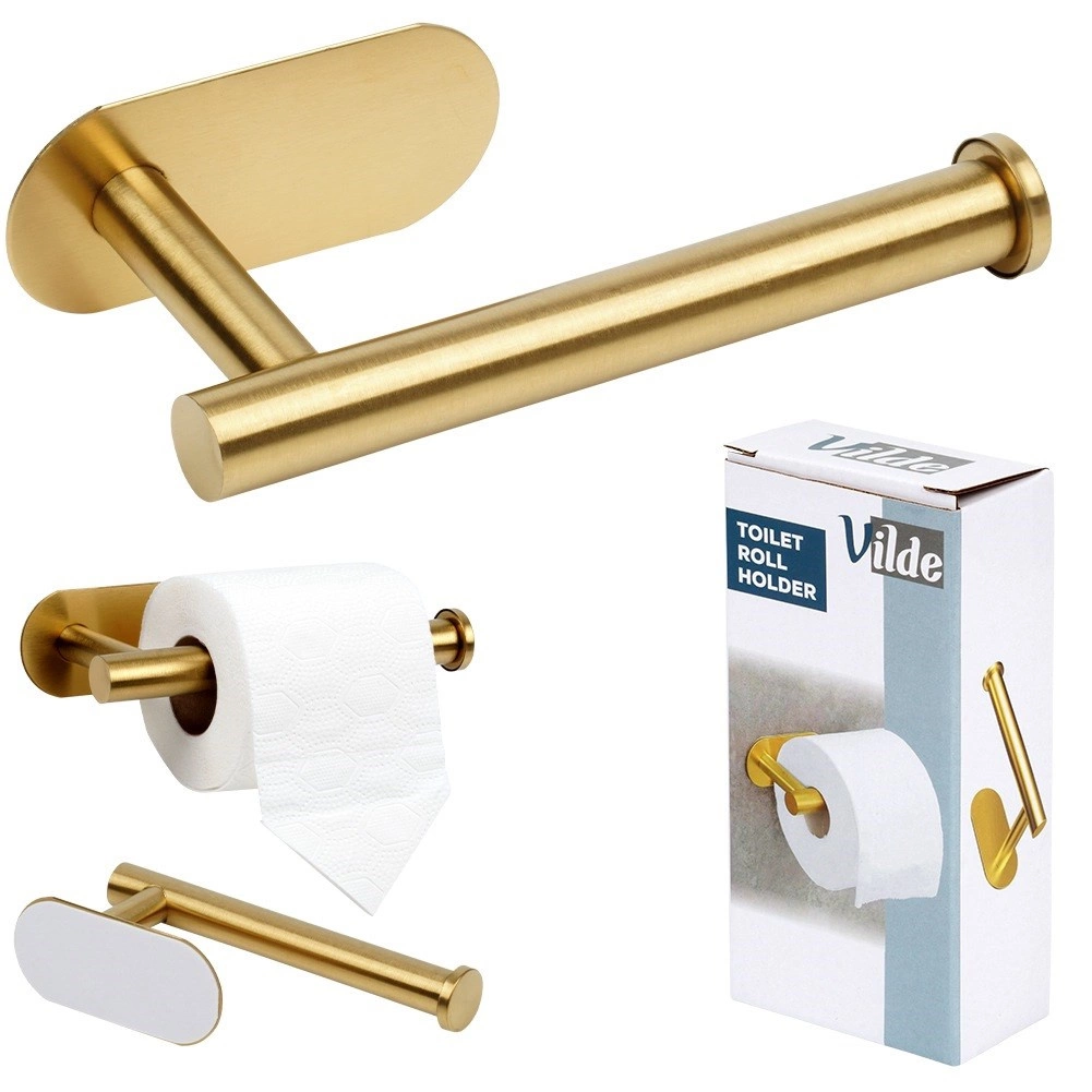 Elegáns rozsdamentes acélból készült, arany színű WC‑papírtartó, amely stílust és praktikusságot visz a fürdőszobába. A kompakt 16,5 × 7,7 × 4,5 cm méret kényelmes használatot biztosít, a hosszú élettartam és az egyszerű tekercscsere pedig megkönnyíti a mindennapi használatot. Egyszerű szerelés sima felületre a csomagban található kétoldalas ragasztószalaggal.
