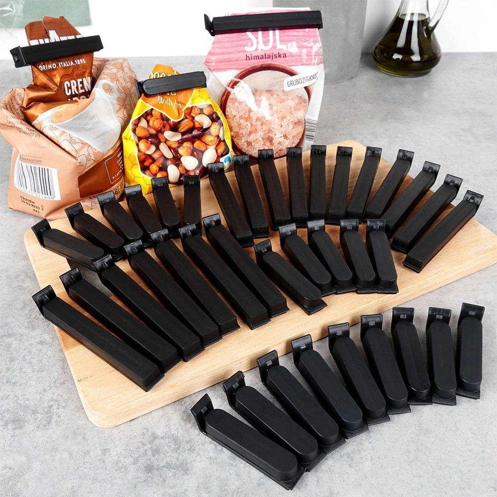 A készlet 20 nagyobb (11 × 1,5 cm) és 20 kisebb (7 × 1,5 cm) klipszet tartalmaz, így a kis és nagy élelmiszeres zacskókat is könnyedén lezárhatja.
