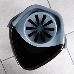 Kompakt és megbízható segítőtárs a mindennapi takarításhoz. A vödör 10 liter űrtartalmat, kivehető kicsavarót a felmosóból kinyomott felesleges víz gyors eltávolításához, valamint erős fogantyút kínál a biztonságos hordozáshoz még teljes terhelésnél is. A formázott kiöntő megkönnyíti a pontos, kontrollált kiöntést.