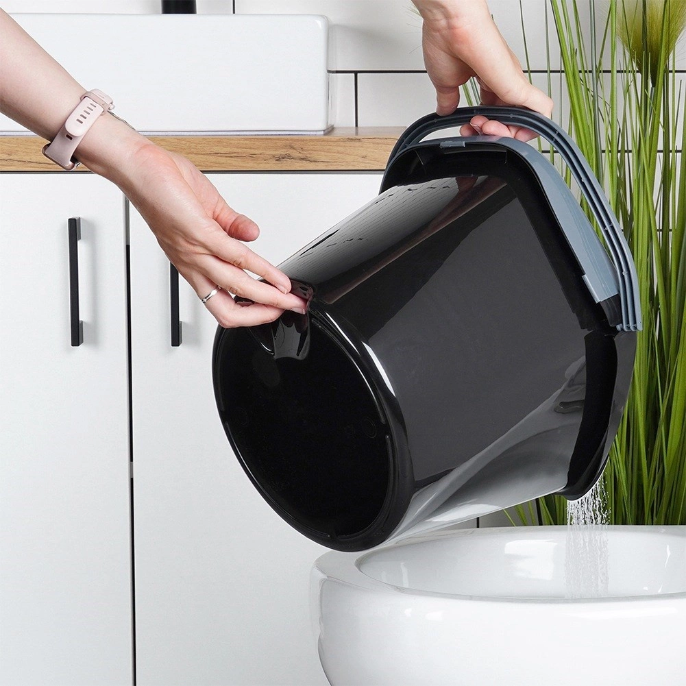 Minőségi fekete műanyag szürke fogantyúval és kicsavaróval a hosszú élettartamért és a kényelmes hordozhatóságért.