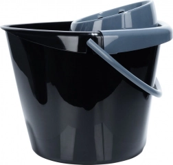 Sokoldalú vödör tartós, fekete műanyag kivitelben, szürke csavaróval, amely ötvözi az alacsony tömeget a magas ellenálló képességgel. Az ergonomikus fogantyúval kényelmesen hordozható teljes töltetnél is, a formázott kiöntő pedig kontrollált kiöntést biztosít rendetlenség nélkül.