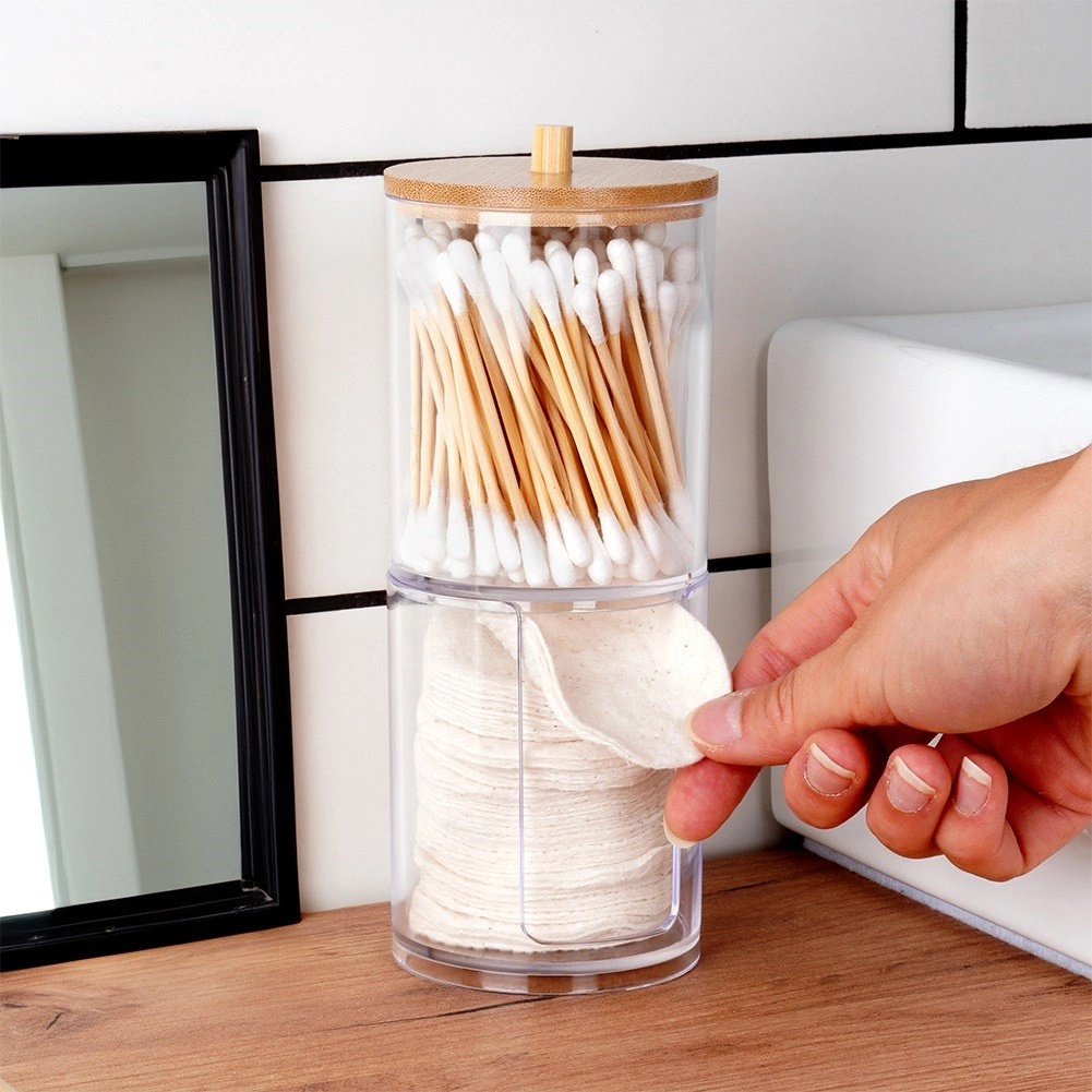 - 2 az 1-ben fürdőszobai rendező vattapálcikákhoz és sminklemosó vattakorongokhoz