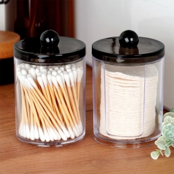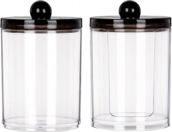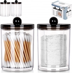 Praktikus, két darabból álló, átlátszó akril dobozszett vattapálcikákhoz és vattakorongokhoz. Kompakt méretek, higiénikus fedél por ellen védő fogantyúval, valamint okos korongadagoló a gyors hozzáférésért. Modern, minimalista design, amely bármely fürdőszobába illik.
