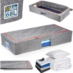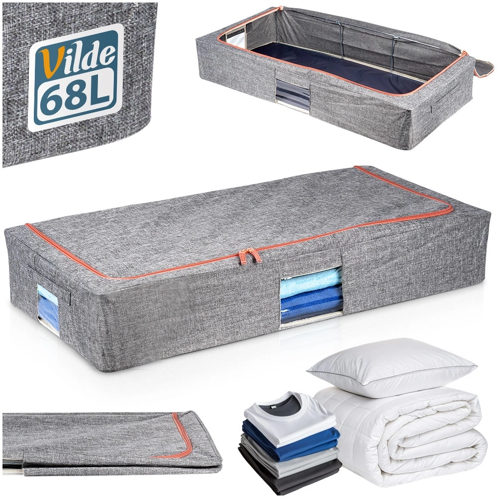 Praktikus, 68 l űrtartalmú tárolózsák párnákhoz, takarókhoz, ágyneműhöz és ruhákhoz. Véd a portól, nedvességtől és a molyoktól, masszív textil kivitelű stabilizáló kerettel, kétirányú cipzárral a könnyű hozzáférésért, átlátszó ablakkal a gyors betekintéshez és oldalsó fogantyúkkal a kényelmes hordozáshoz. Ideális szekrénybe és az ágy alá is.