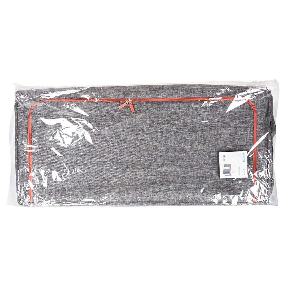 Tartson rendet otthon és takarítson meg helyet a tágas tárolózsákkal, melynek mérete 95 × 45 × 16 cm. A tartós, szürke melírozott poliészter szövet kontrasztos cipzárral megbízhatóan védi a textíliákat a portól, nedvességtől és kártevőktől, miközben az átlátszó ablak lehetővé teszi a tartalom azonnali ellenőrzését nyitás nélkül.