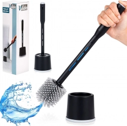 Praktikus szilikon WC-kefe stabil állvánnyal és beépített tisztítószer-adagolóval a gyors és higiénikus tisztításhoz. A rugalmas szilikonszálaknak, a hatékony, nyélből történő adagolásnak és a csúszásmentes állványnak köszönhetően a toalett tökéletesen tiszta marad karcolások nélkül.