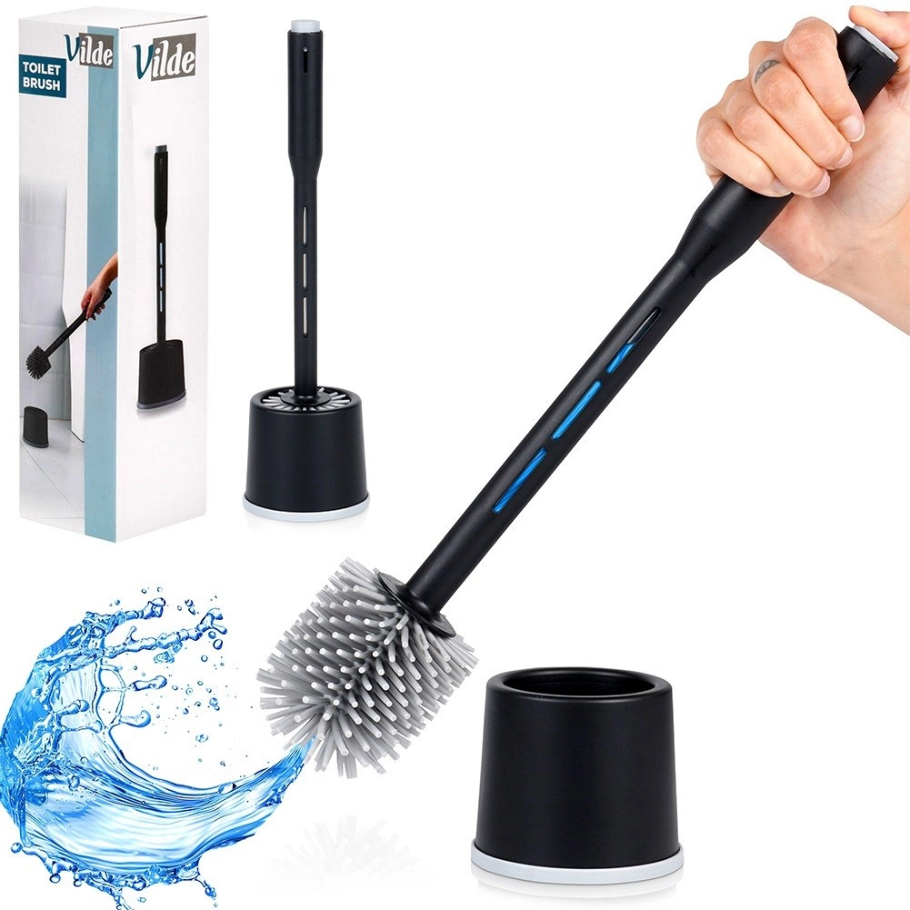 Ez a modern WC-kefe a strapabíró szilikon fejet a nyélbe rejtett adagolóval ötvözi, így a tisztítószer mindig kéznél van. A szilikon sörték könnyen leöblíthetők, gyorsan száradnak és higiénikusak – nem szívják magukba a szennyeződéseket vagy a szagokat.