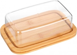 Elegáns bambusz vajtartó átlátszó fedéllel a mindennapi használathoz. Ideális a vaj tárolására és tálalására, természetes bambusz alappal és tartós, átlátszó fedéllel, amely megőrzi a frissességet és az ízt. A klasszikus forma illik bármely konyhába, a könnyű karbantartás pedig garantálja a tökéletes higiéniát.