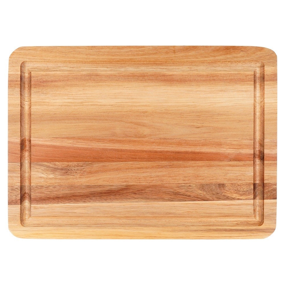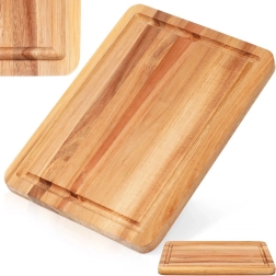 Adjon konyhájának természetes stílust és funkcionalitást. Ez a minőségi akácfa deszka strapabíró, kemény és antibakteriális, így kiválóan alkalmas mindennapos hús-, zöldség- és pékáru-vágáshoz. A mély, körbefutó vájat felfogja a leveket, és segít tisztán tartani a munkalapot.