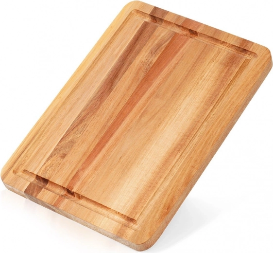 Praktikus akácfa vágódeszka 28 × 20 cm méretben, 1,5 cm vastagsággal, ideális mindennapi konyhai használatra. A mély lévájatnak köszönhetően tisztán tartja a munkafelületet, nedvességálló, masszív és stabil, és kiválóan alkalmas vágásra, valamint sajtok, felvágottak és zöldségek stílusos tálalására is.