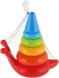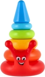 Számos színes, különböző méretű gyűrű fejleszti a gyerekek motorikus képességeit és koordinációját.