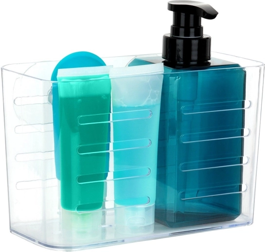 Tartson rendet a zuhanyzóban és az egész fürdőszobában. Ez az átlátszó polc 18,5 × 9 × 12 cm méretben két erős tapadókoronggal rögzíthető, így pillanatok alatt felszerelhető fúrás nélkül, és nem károsítja a felületeket. A vízelvezető réseknek köszönhetően a víz nem áll meg, a tárolt tárgyak gyorsabban száradnak.