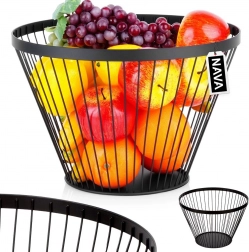 Stílusos és praktikus fém gyümölcs- és zöldségkosár matt fekete színben, a MISTY kollekcióból, a NAVA márkától. A nyitott drótszerkezetű design kiváló légáramlást biztosít, így az élelmiszerek tovább maradnak frissek, miközben elegánsan láthatók. A stabil konstrukció, a megfelelő kapacitás és az időtlen, indusztriális stílus klasszikus és modern enteriőrökbe egyaránt illik.