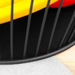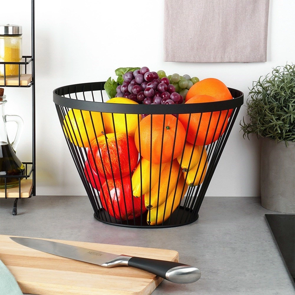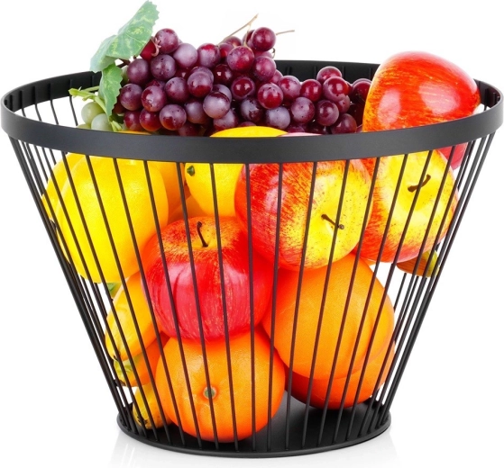 A Misty fém gyümölcskosár ideális választás minden konyhába és étkezőbe. Minőségi fémből készült, porfestett fekete felülettel, amely tartós és könnyen tisztán tartható. A magas, kiszélesedő oldalfalak bőséges mennyiségű gyümölcsöt vagy zöldséget befogadnak, és a légies drótszerkezetű formának köszönhetően a tartalom tovább marad friss.