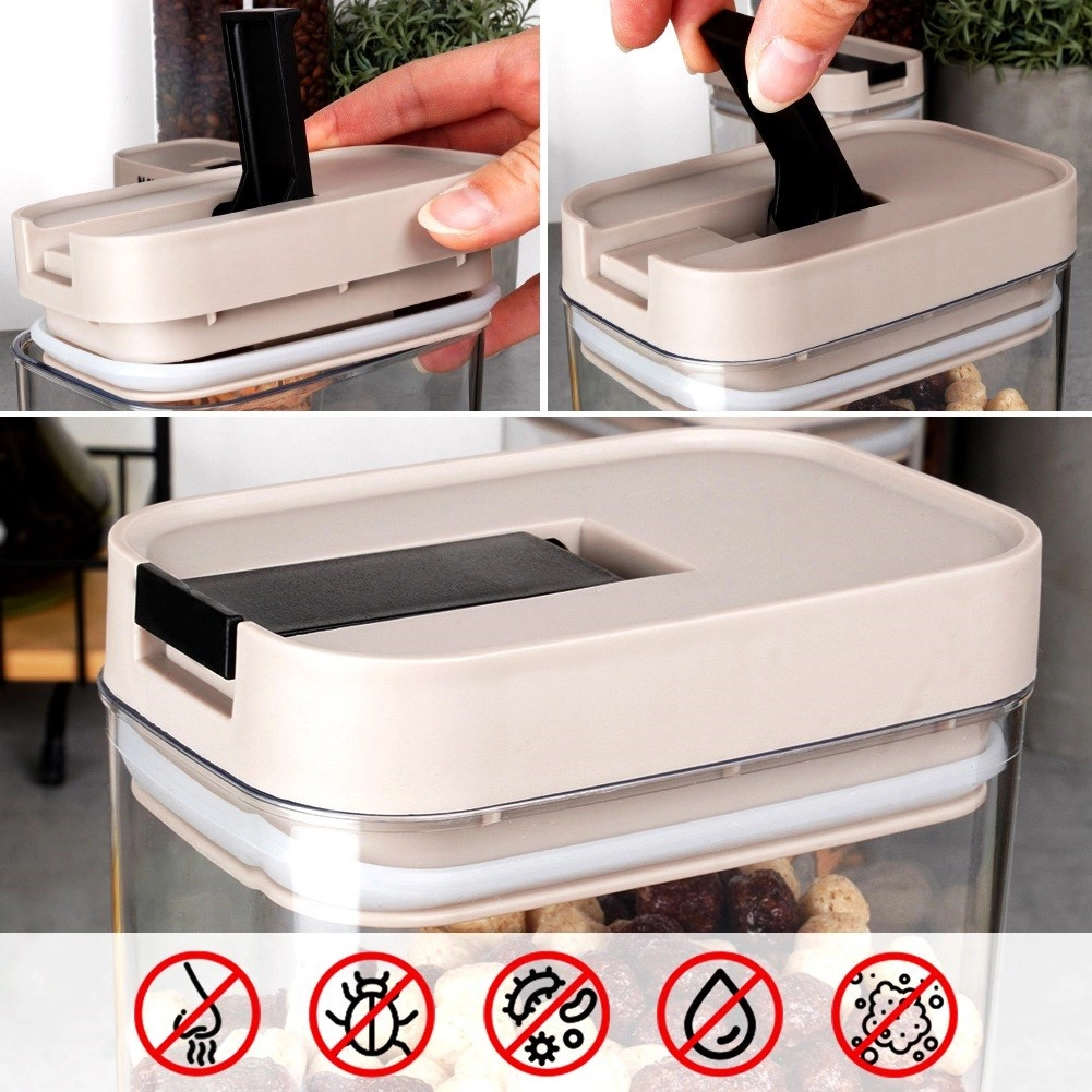 A karos mechanizmus és a tömítő gumi megakadályozza a levegő és a nedvesség bejutását, így az élelmiszerek ropogósak, illatosak maradnak és védettek a kártevőktől.