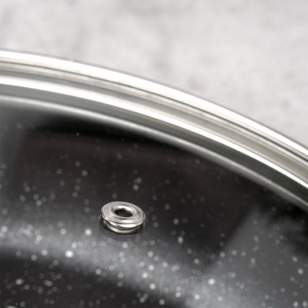 A strapabíró rozsdamentes acél perem védi az éleket, és stabil, szoros illeszkedést biztosít a 24 cm átmérőjű edényekhez.