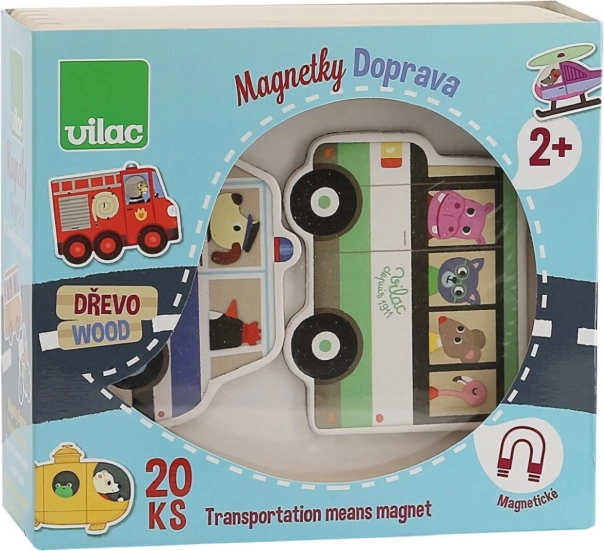 Közlekedési eszközök mintás fa mágnes készlet, ideális gyerekszoba vagy hűtő dekorálására. Környezetbarát módon készült.