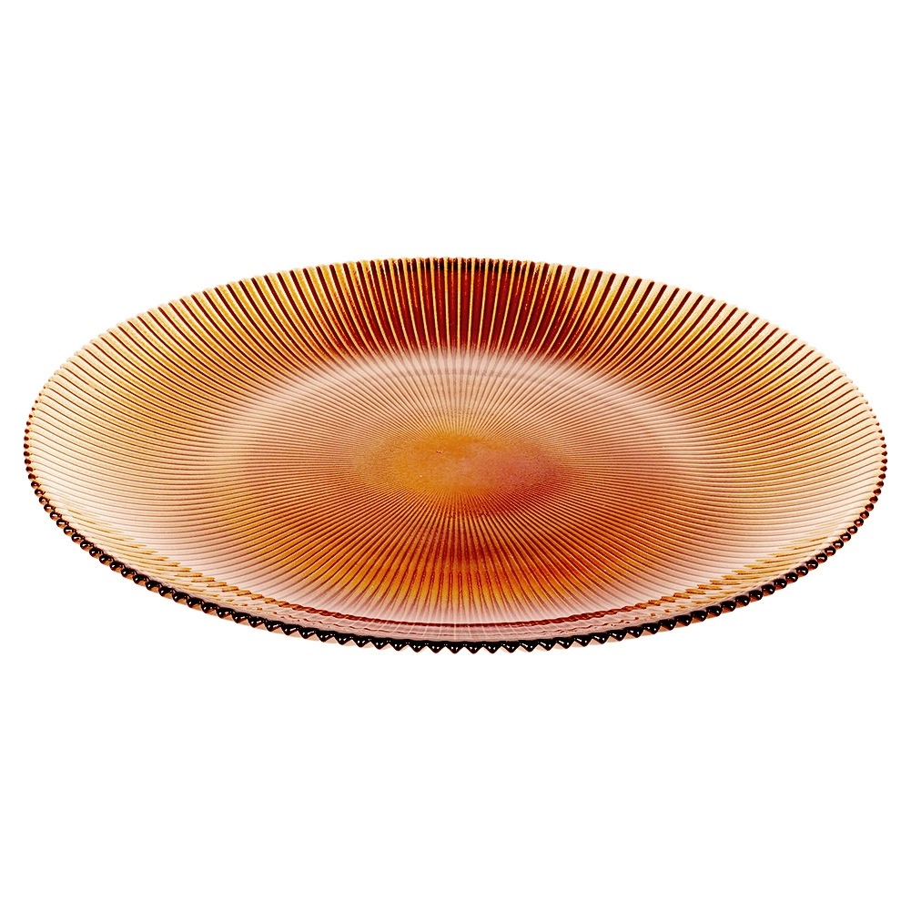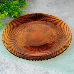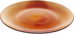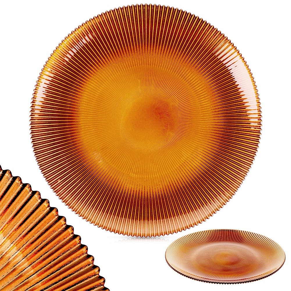 Elegáns, 28 cm átmérőjű lapostányér meleg borostyánsárga árnyalatú üvegből. Finom bordázata és fényes felülete luxus hatást kelt az asztalon, miközben praktikus a mindennapi használathoz. Ideális főételekhez, desszertekhez és tálaláshoz. Strapabíró üveg, látványos radiális textúra és sokoldalú felhasználás otthonra és vendéglátásba egyaránt.