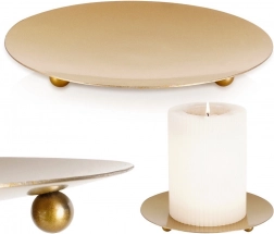 Ez a stílusos arany színű fém gyertyatál letisztult, minimalista megjelenésével és minőségi kidolgozásával tűnik ki. Matt, arany árnyalatú felülete könnyen kombinálható a különféle enteriőr stílusokkal – a moderntől a skandinávig. A praktikus lábaknak köszönhetően légies hatású, ugyanakkor biztonságosan a helyén marad.