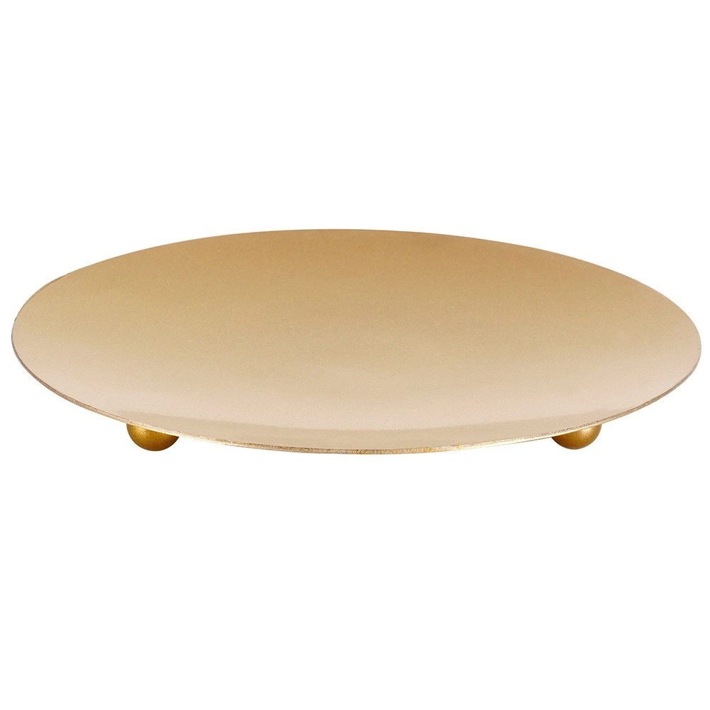 Elegáns, 12 cm átmérőjű fém gyertyatál stabil, gömb alakú lábakkal, amely megóvja a bútorokat a hőtől és a viasztól. Minimalista, matt arany dizájnja modern és időtálló hangsúlyt ad a térnek, tartós, stabil, és kiválóan alkalmas dekoratív elrendezésekhez és mindennapi használatra is.