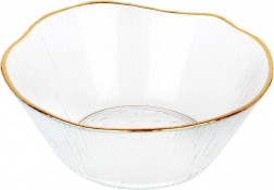 Ez a stílusos, arany peremmel díszített üveg tál modern dizájnjával és visszafogottan texturált felületével tűnik ki, amely a kristályt idézi. Az átlátszó üveg szépen kiemeli a felszolgált ételek színeit, és luxus hangulatot kölcsönöz minden terítéknek.