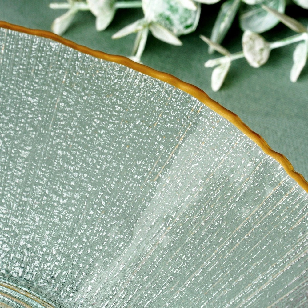 Az aranyozott perem fényűző megjelenést ad a tálnak, míg a strukturált üveg kristályhatást kelt és kiemeli a tálalt fogásokat.