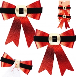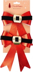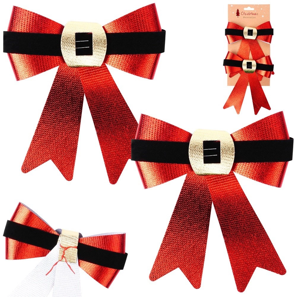 Dobja fel otthonát az ünnepek alatt egy stílusos, két darabból álló masnikészlettel, 15 × 17 cm-es méretben. A fényes piros felület, a fekete velúr „öv” és az arany csat elegáns, klasszikus karácsonyi megjelenést kölcsönöznek. A drótnak köszönhetően könnyen rögzíthető a fára, koszorúra vagy korlátra, és tartós, többször felhasználható sok szezonon át.