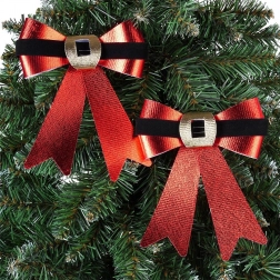 Ezek a dekoratív masnik metálfényű piros csillogásukkal és a arany csattal díszített fekete szalag részlettel tűnnek ki, amely az ikonikus karácsonyi motívumot idézi. Ideálisak karácsonyfa, koszorúk, ablakok, párkányok és kirakatok díszítésére, és pillanatok alatt ünnepi hangulatot teremtenek.
