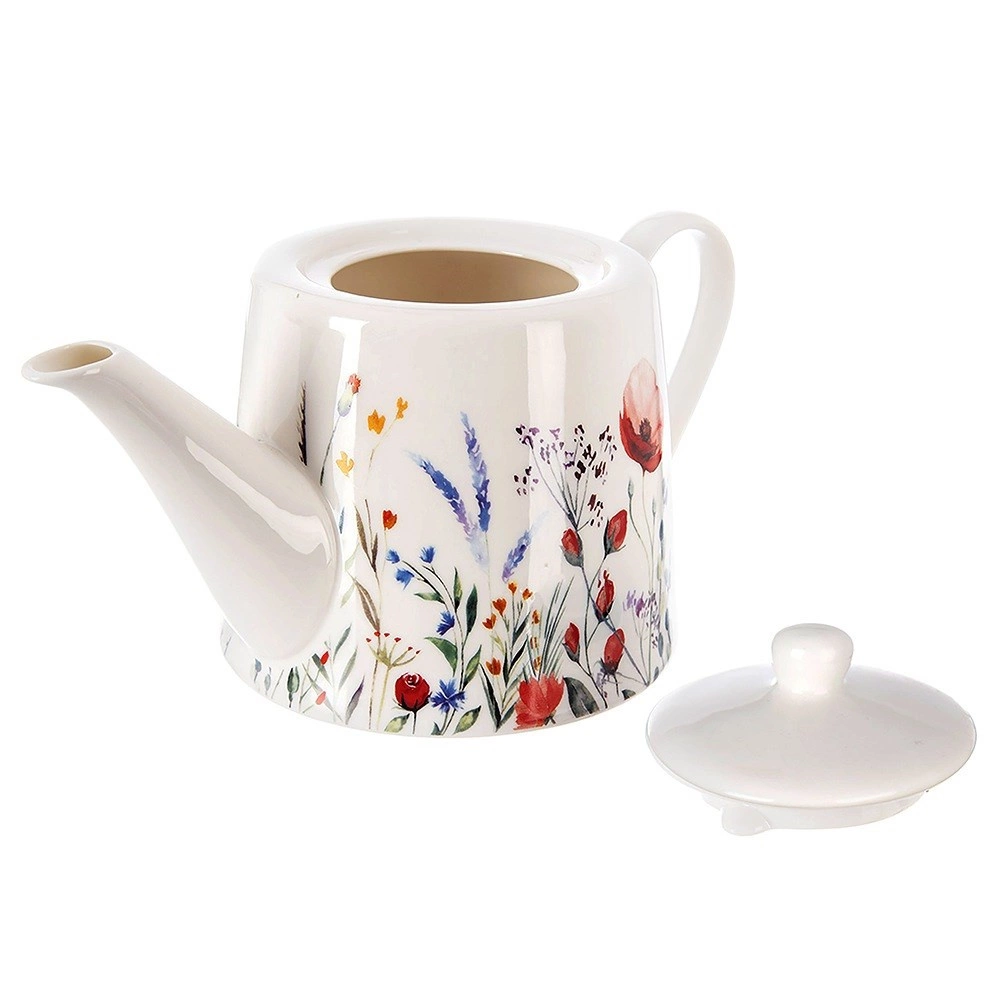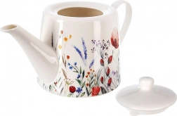 A Maki kollekció stílusos kannája fehér porcelánból, színes rétivirág-dekorral, amely bájt kölcsönöz minden terítésnek. A praktikus, fogantyús fedél megtartja az ital hőmérsékletét és védi a tartalmat, míg a kényelmes fül és a hosszú csőr biztos fogást és pontos, kifröccsenés nélküli öntést garantál.