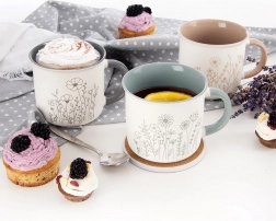 Elegáns porcelán bögre 400 ml űrtartalommal, klasszikus dizájnnal, fehér külső felülettel és bézs belsővel és füllel. Mosogatógépben és mikrohullámú sütőben is használható, ideális kávéhoz, teához vagy kakaóhoz. Mezei virágmotívum és kényelmes, ergonomikus fül a mindennapi használathoz.