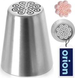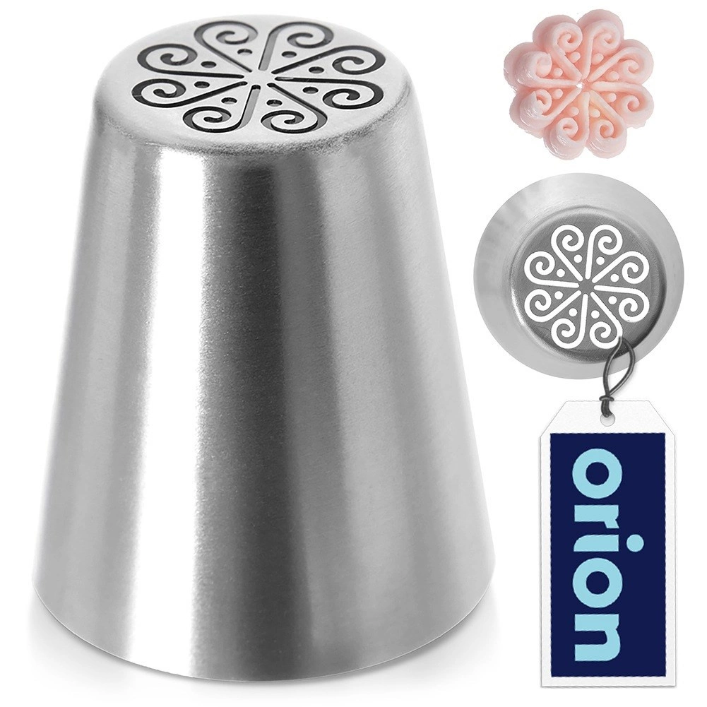 Ez az orosz cső virágmintás nyílással pillanatok alatt gyönyörű virágokat varázsol vaj- vagy fehérjekrémből. Ideális torták, piték és kisebb desszertek díszítéséhez. A masszív rozsdamentes acél hosszú élettartamot, könnyű tisztítást és élelmiszerrel való biztonságos érintkezést biztosít.