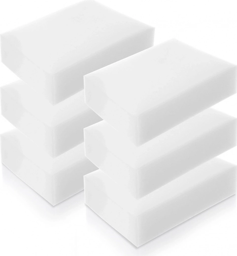 Sokoldalú felhasználás az otthonban: műanyag (keretek, kapcsolók), kerámia (mosdók, csempék), rozsdamentes acél (mosogatók, készülékek), üveg és lakkozott felületek. Falakon is kiválóan működik – eltávolítja a csíkokat, cipőnyomokat, valamint a zsírkrétával vagy filccel készült rajzokat. Minden szivacs: 10 × 7 × 3 cm.