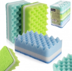 Ezzel a praktikus, 3 darabos szivacskészlettel a mindennapi mosogatást, a mosogató és a konyhai felületek tisztítását gyorsan és kíméletesen elvégezheti. Minden szivacs két különböző oldallal rendelkezik – puha, hullámos az érzékeny felületekhez és durvább, abrazív a rászáradt szennyeződések hatékony eltávolításához.