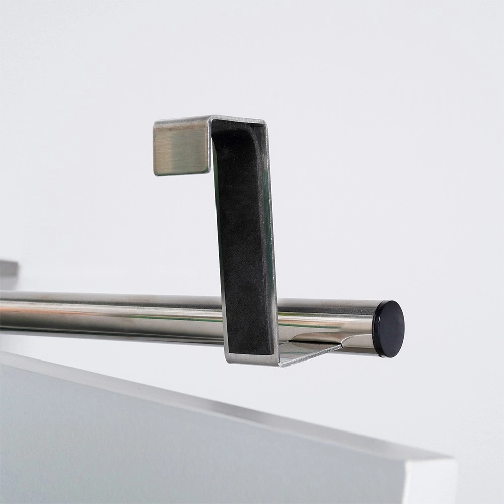 Rozsdamentes acélból készült, elegáns ezüst kivitelben a hosszú élettartam és könnyű karbantartás érdekében. A szerelés teljesen szerszámmentes – egyszerűen akassza az ajtó felső élére (max. 2 cm). Remek megoldás konyhába, fürdőszobába és háztartási helyiségbe.