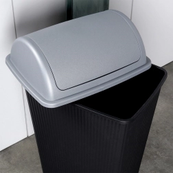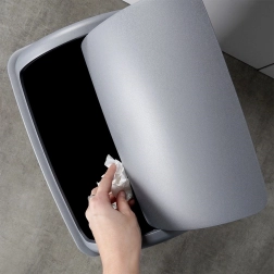 A praktikus billenő fedél elfordul, majd használat után automatikusan visszatér zárt helyzetbe. Csökkenti a szagokat, és rejtve tartja a tartalmat a tisztább, esztétikusabb környezetért.